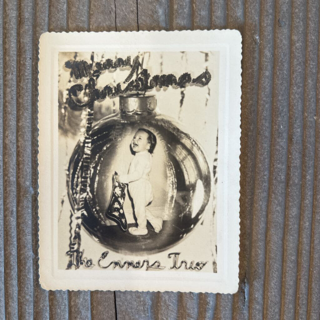 CHRISTMAS CARD WITH BABY HOLING STOCKING