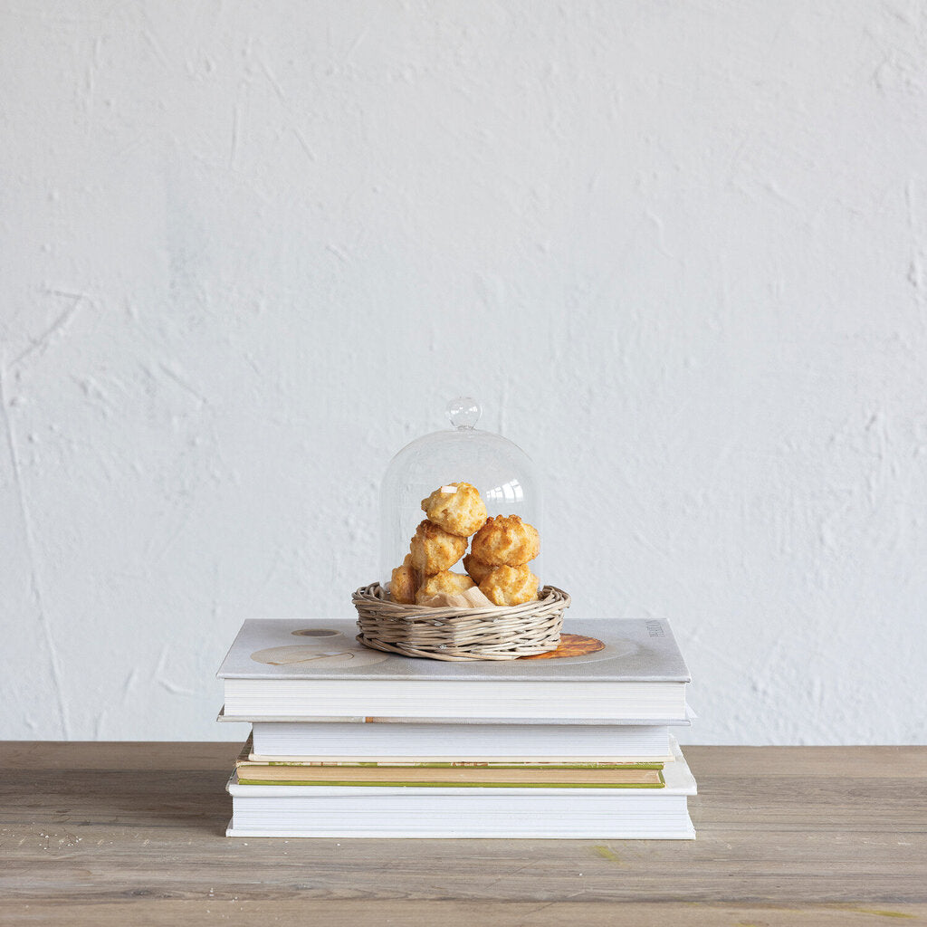 DECORATIVE GLASS CLOCHE WITH WOVEN WILLOW BASE