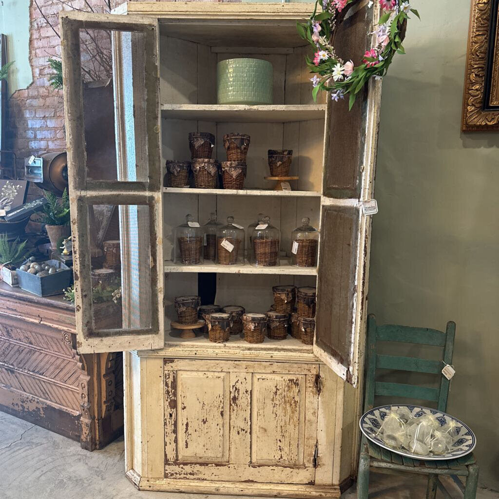 HANDMADE SOUTHERN PLANTATION CORNER CABINET WITH ORIGINAL PAINT, C. 1800