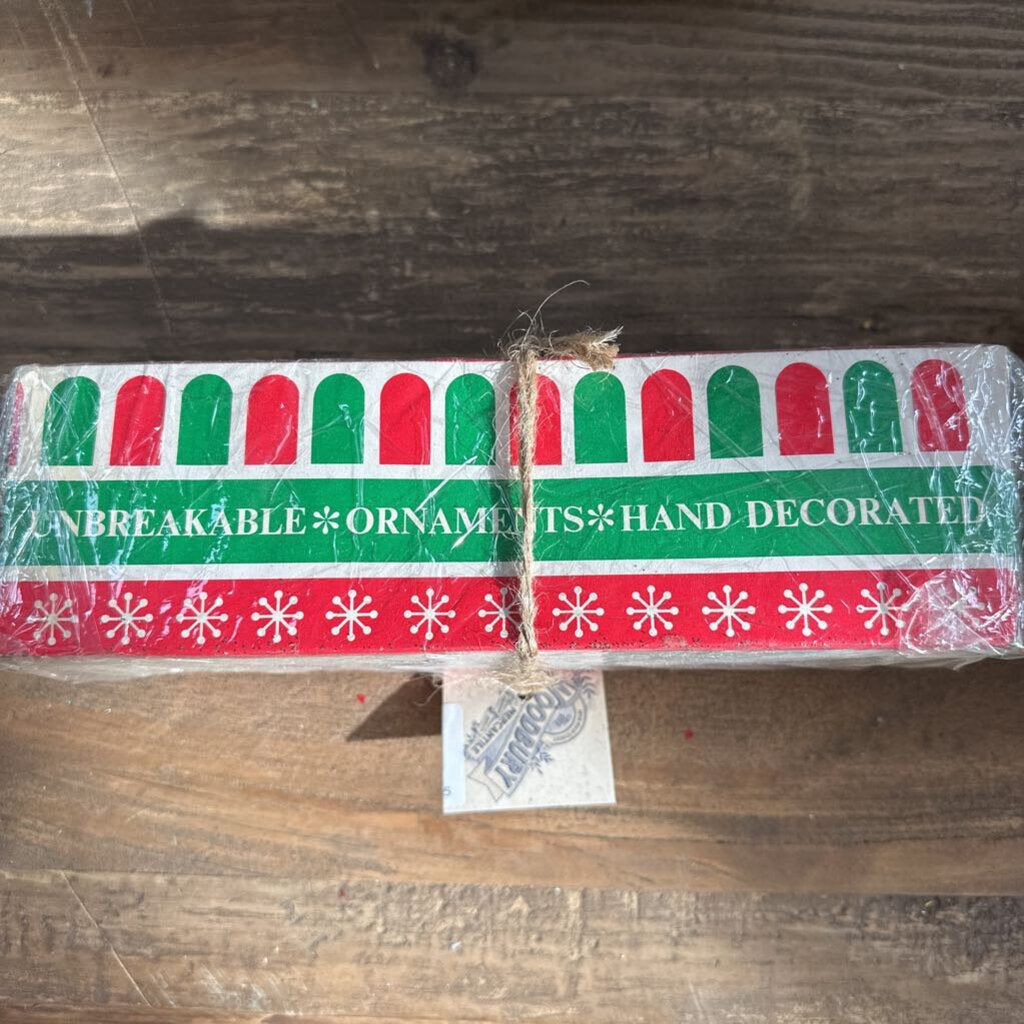 VINTAGE UNBREAKABLE ORNAMENTS IN BOX
